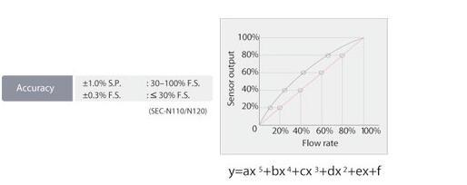 ■高精度(設定點為基準)MFC的線性度將由近似多項式曲線進行補償。這幫助實現了對所有流量控制范圍的高精度控制。為了實際氣體流量的準確性進一步提高,各種工藝氣體的校準數據將按照HORIBA STEC標準的氣體測量系統進行校驗。